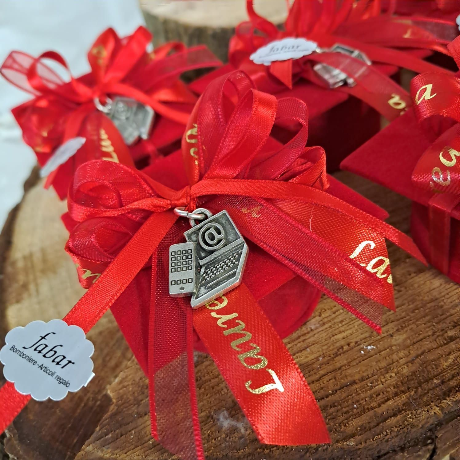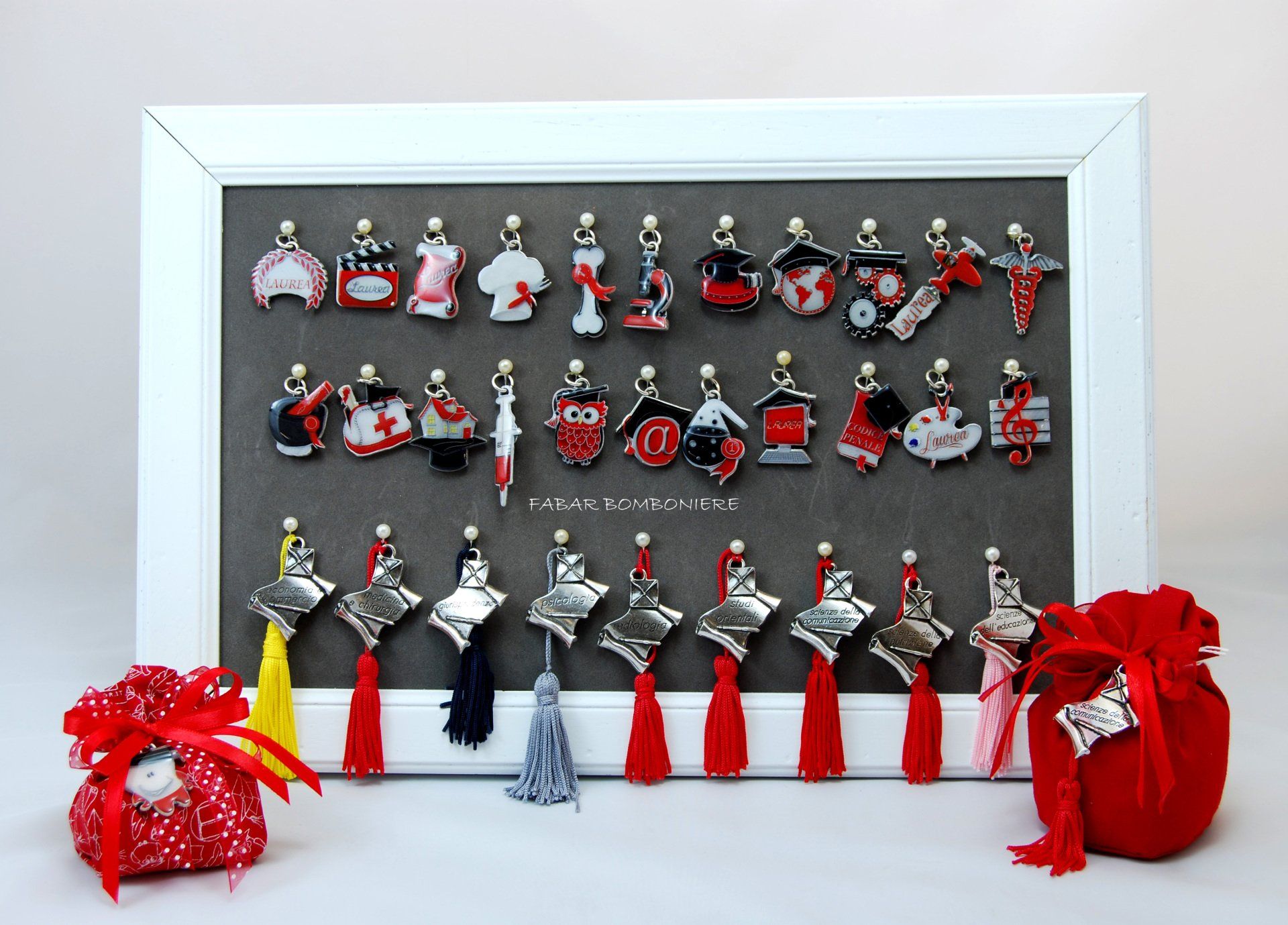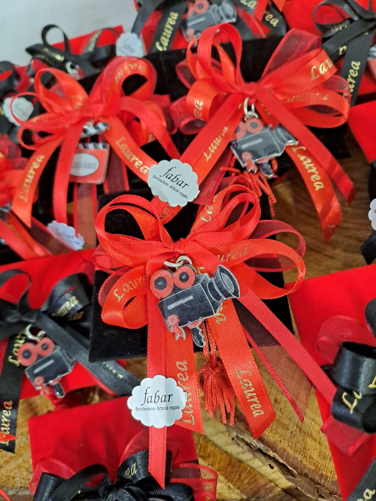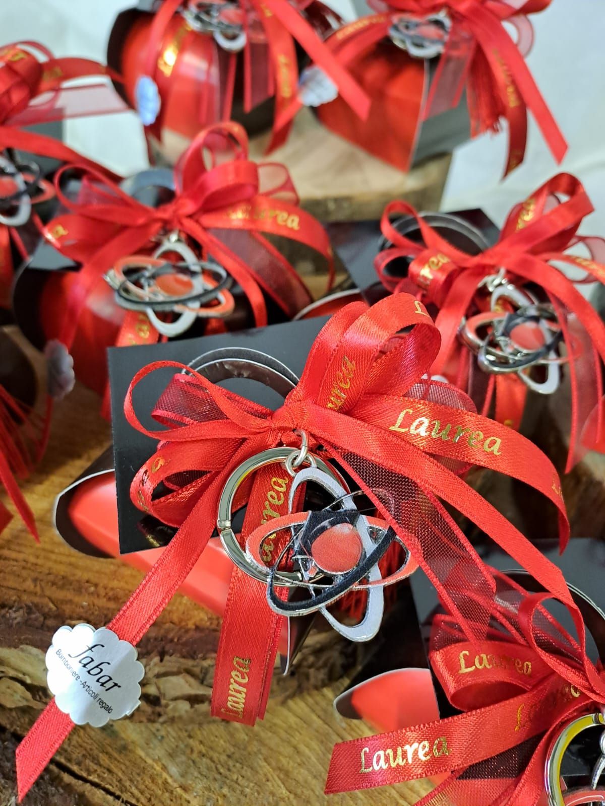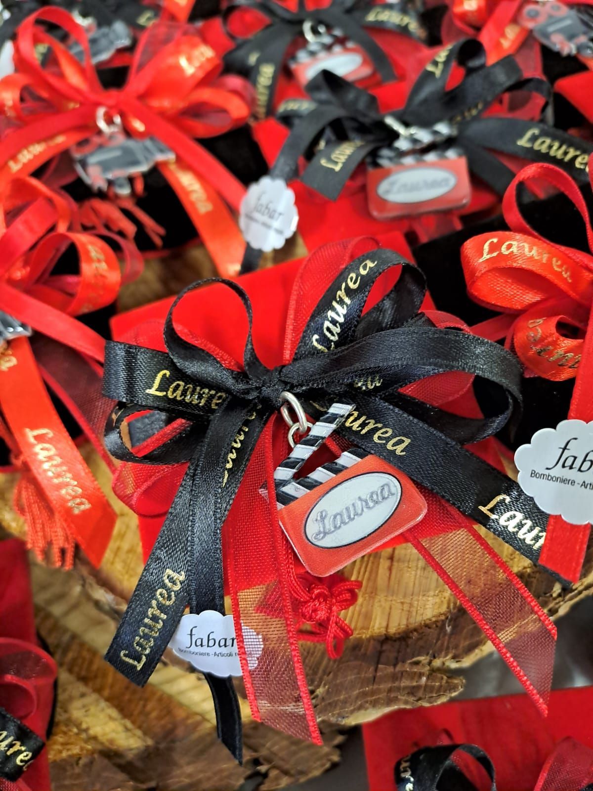 Da noi potrete personalizzare le bomboniere in base al colore della vostra facoltà e farvi incidere i vostri nomi e la data della laurea.
