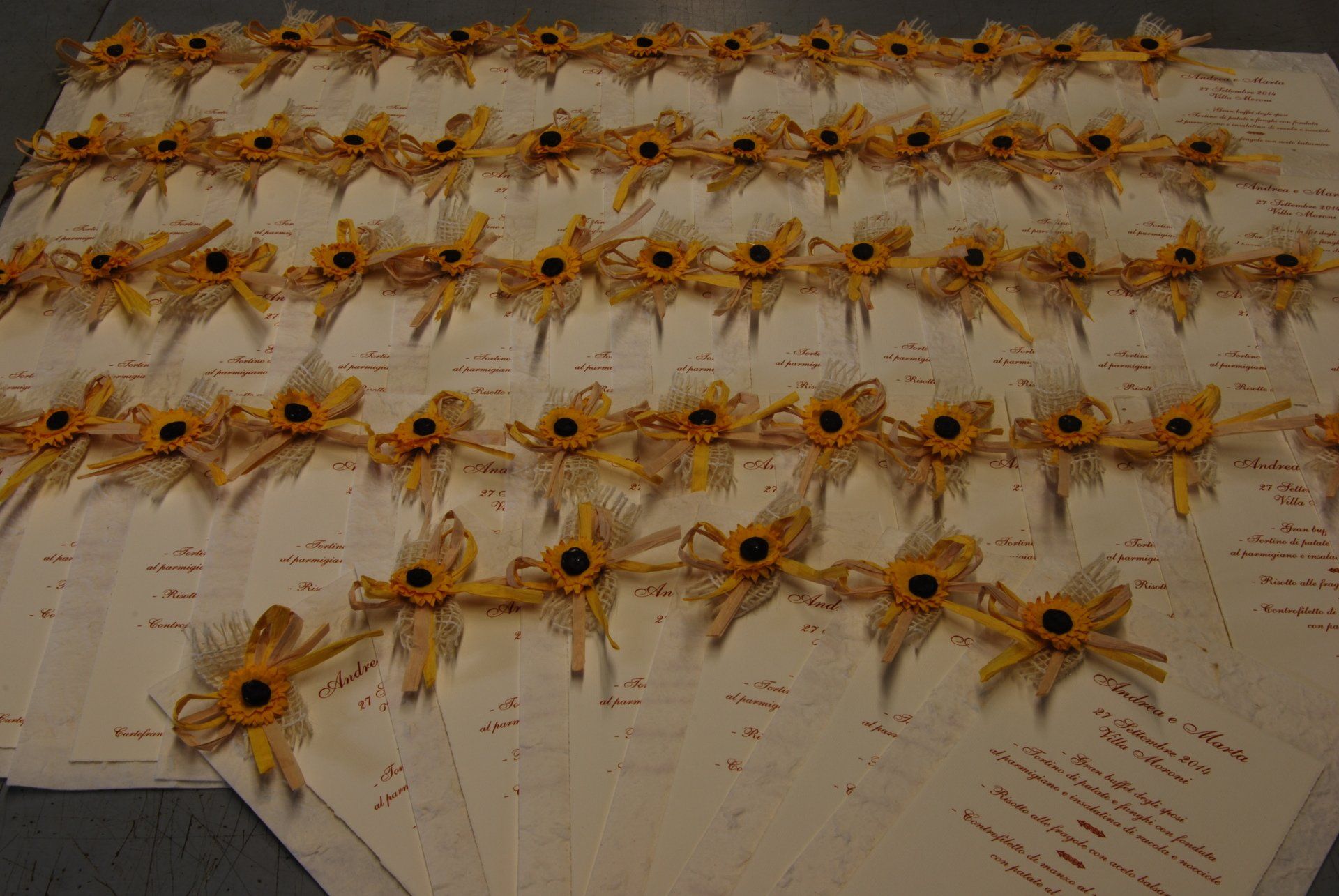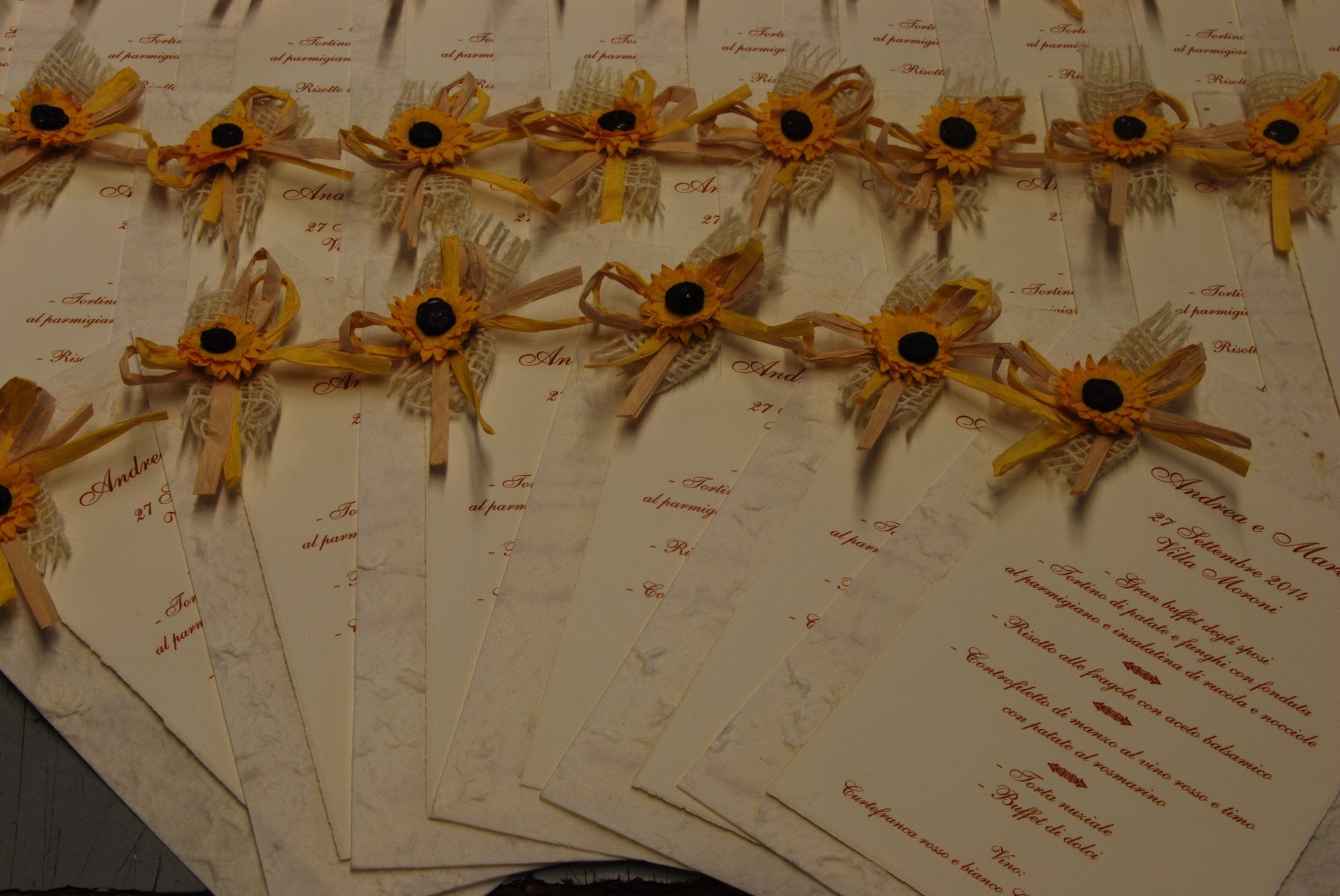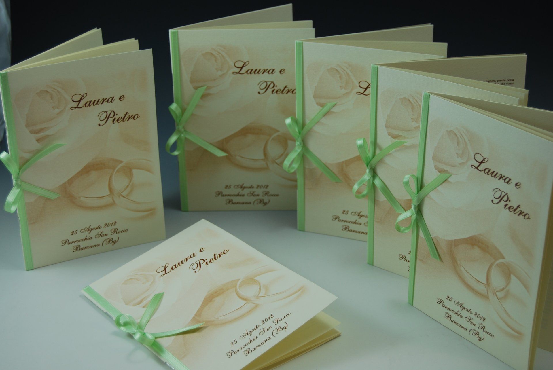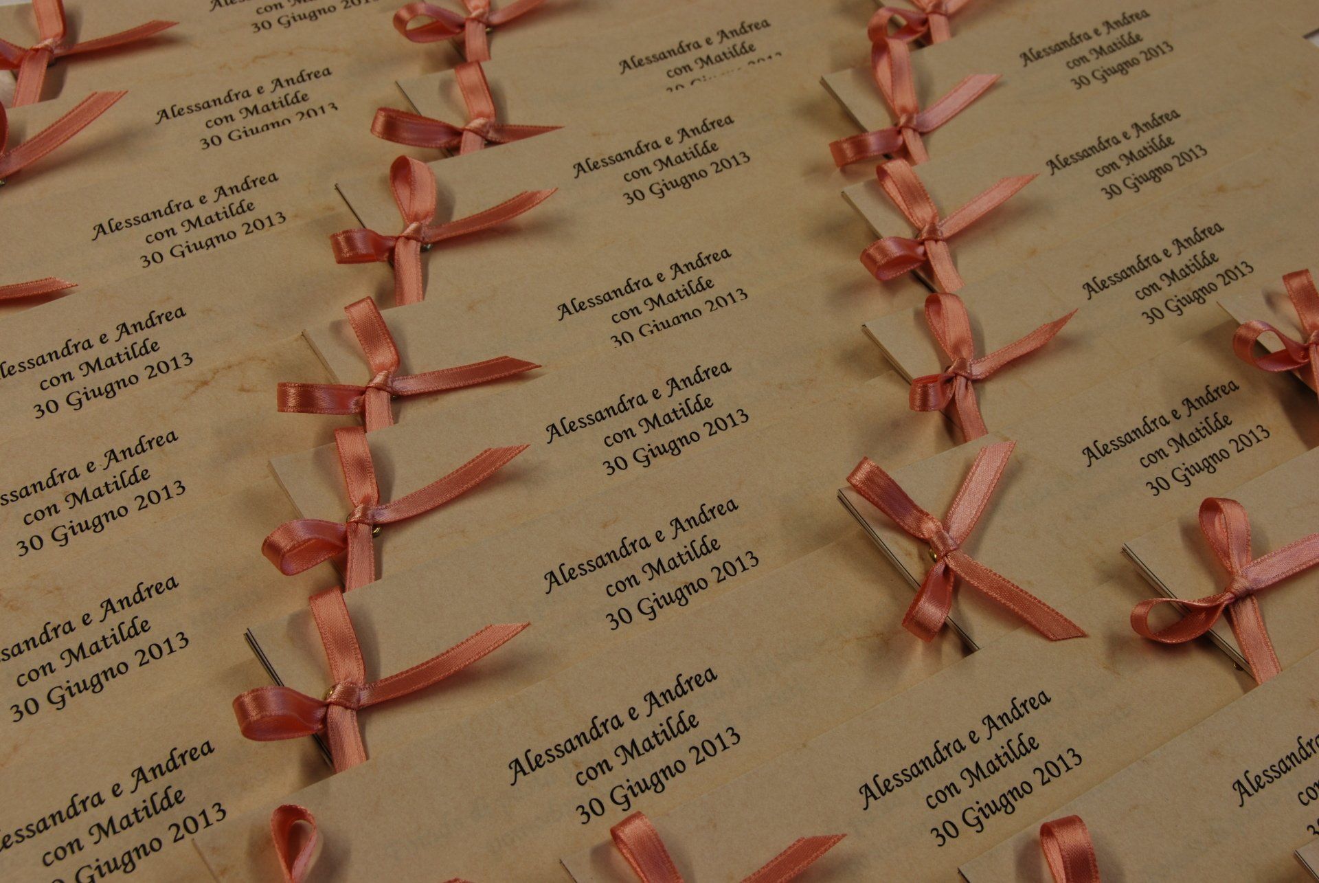 Ci occupiamo infatti di realizzare tableaux de mariage personalizzati, libretti messa, menu per il ristorante, segnaposti e segnatavoli, ventagli, wedding bag, bolle di sapone , tubi spara coriandoli e conetti per il riso personalizzati e tutto quello che la vostra fantasia vi suggerisce.