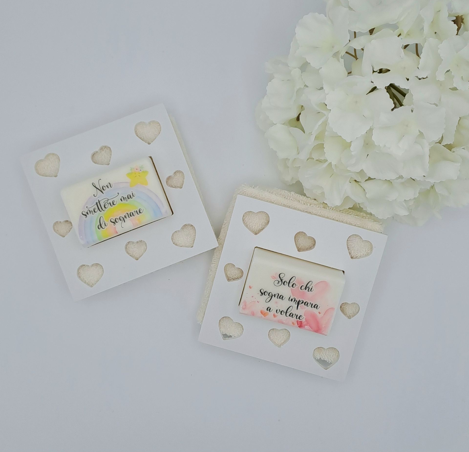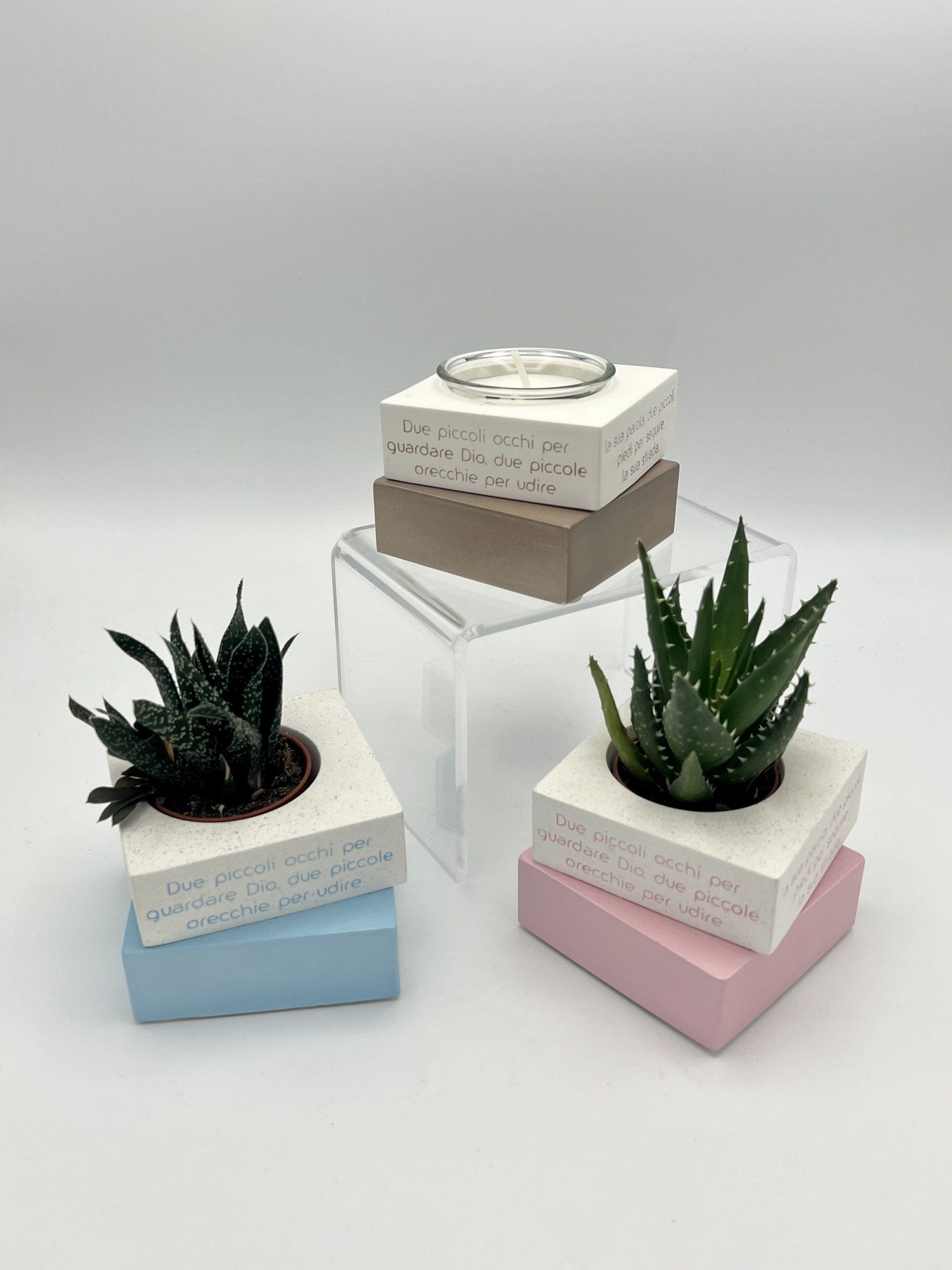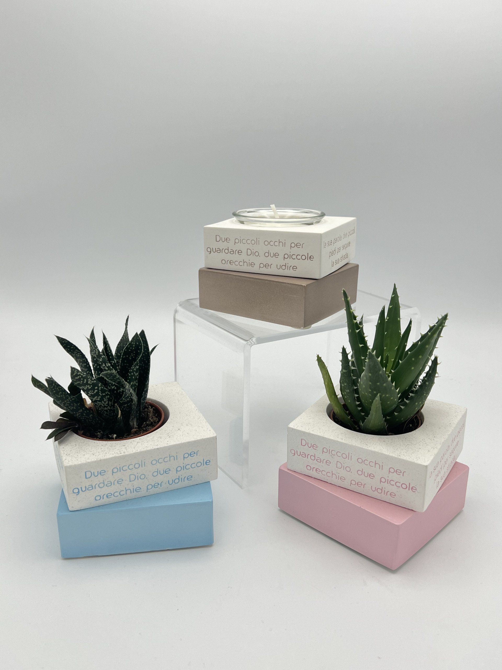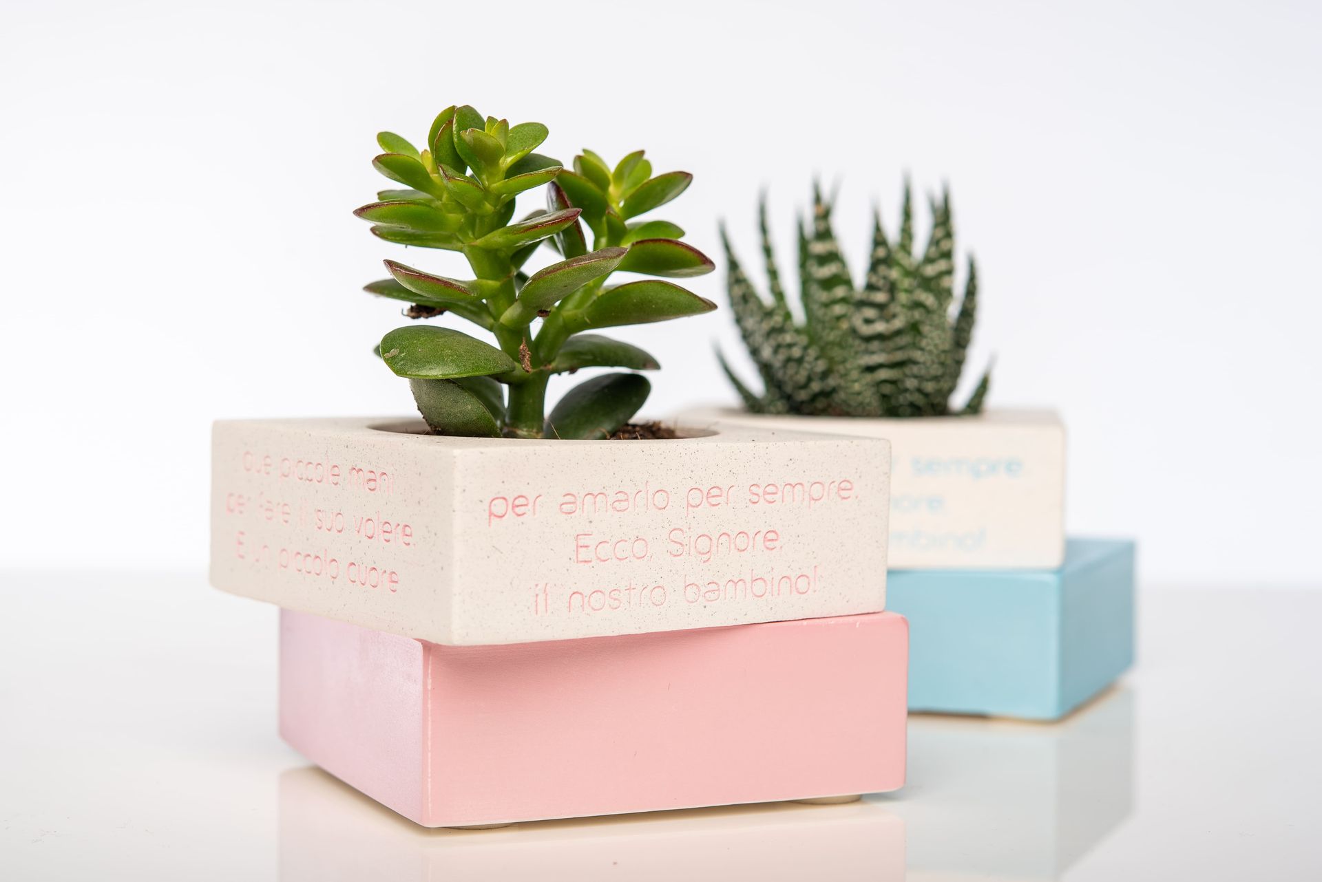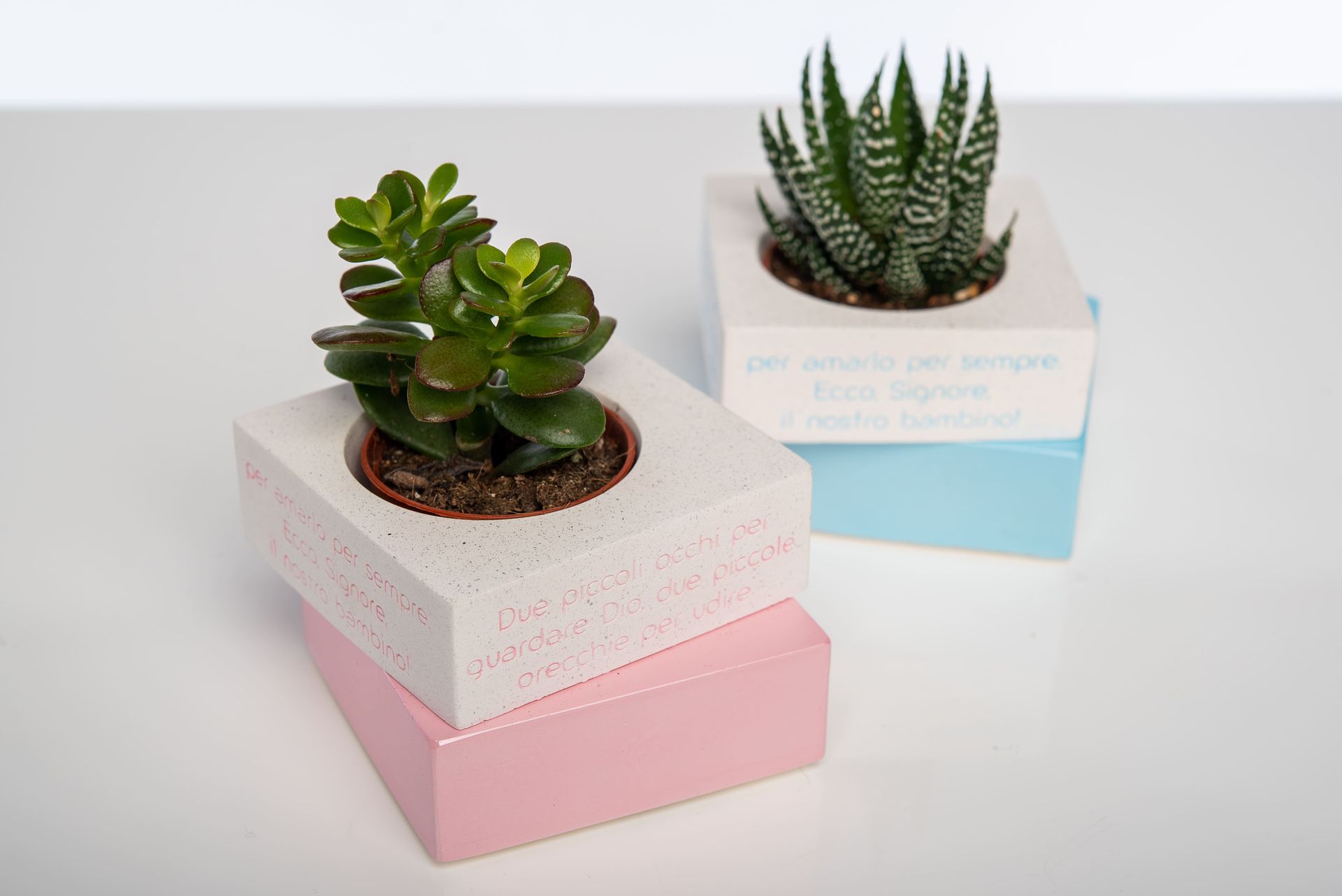 Il nostro laboratorio creativo si è specializzato nella produzione di idee regalo e bomboniere dal gusto moderno ed essenziale. Uno dei nostri punti forti è la produzione di bomboniere per battesimo, che possono essere personalizzate al 100%, non solo con il nome del vostro bambino inciso, stampato o scritto a mano, ma talvolta anche con la sua fotografia!